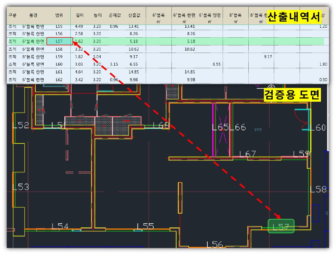 산출내역서 뿐만 아니라 검증용 도면도 같이 드립니다.